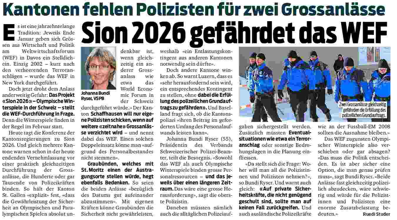 Kantonen fehlen Polizisten für zwei Grossanlässe